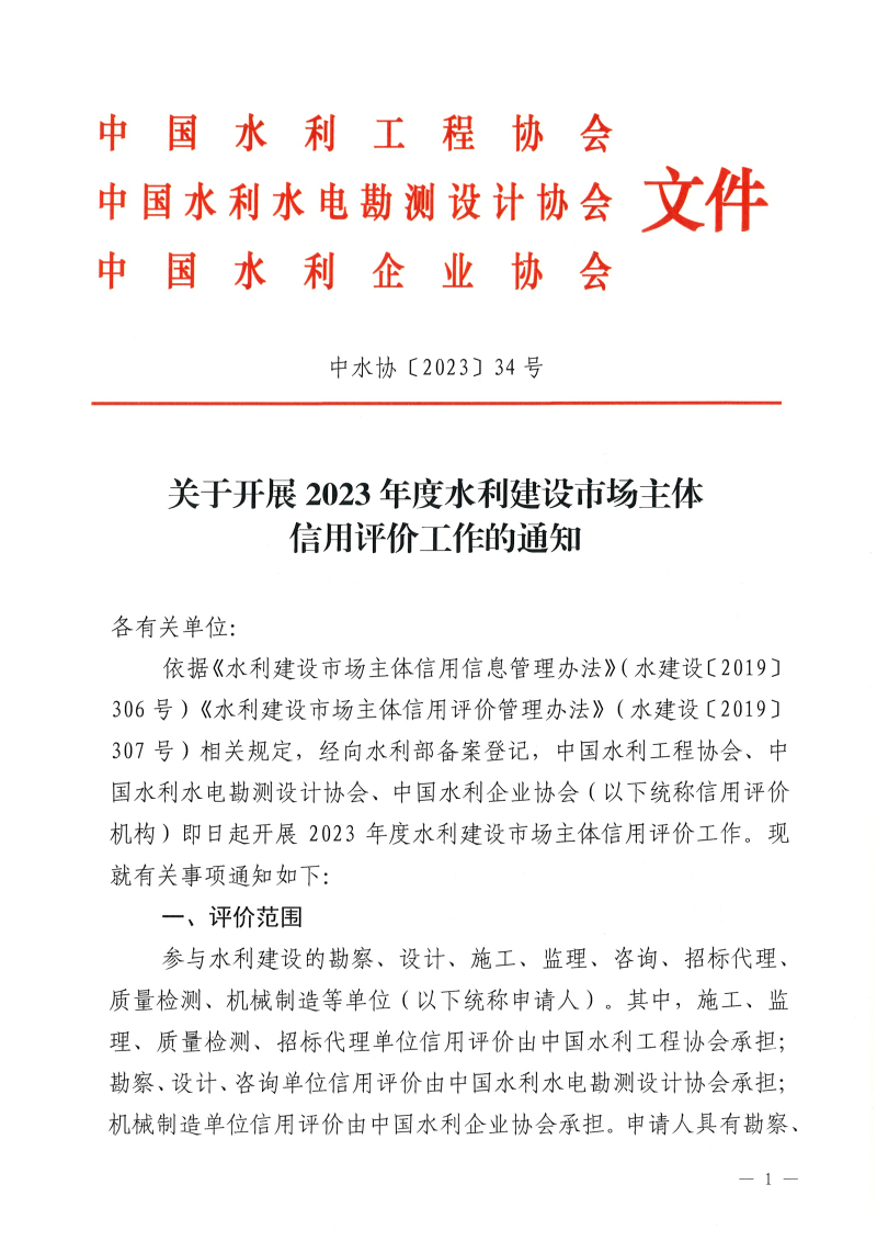 轉發(fā)<關于開展2023年度水利建設市場主體信用評價工作的通知>