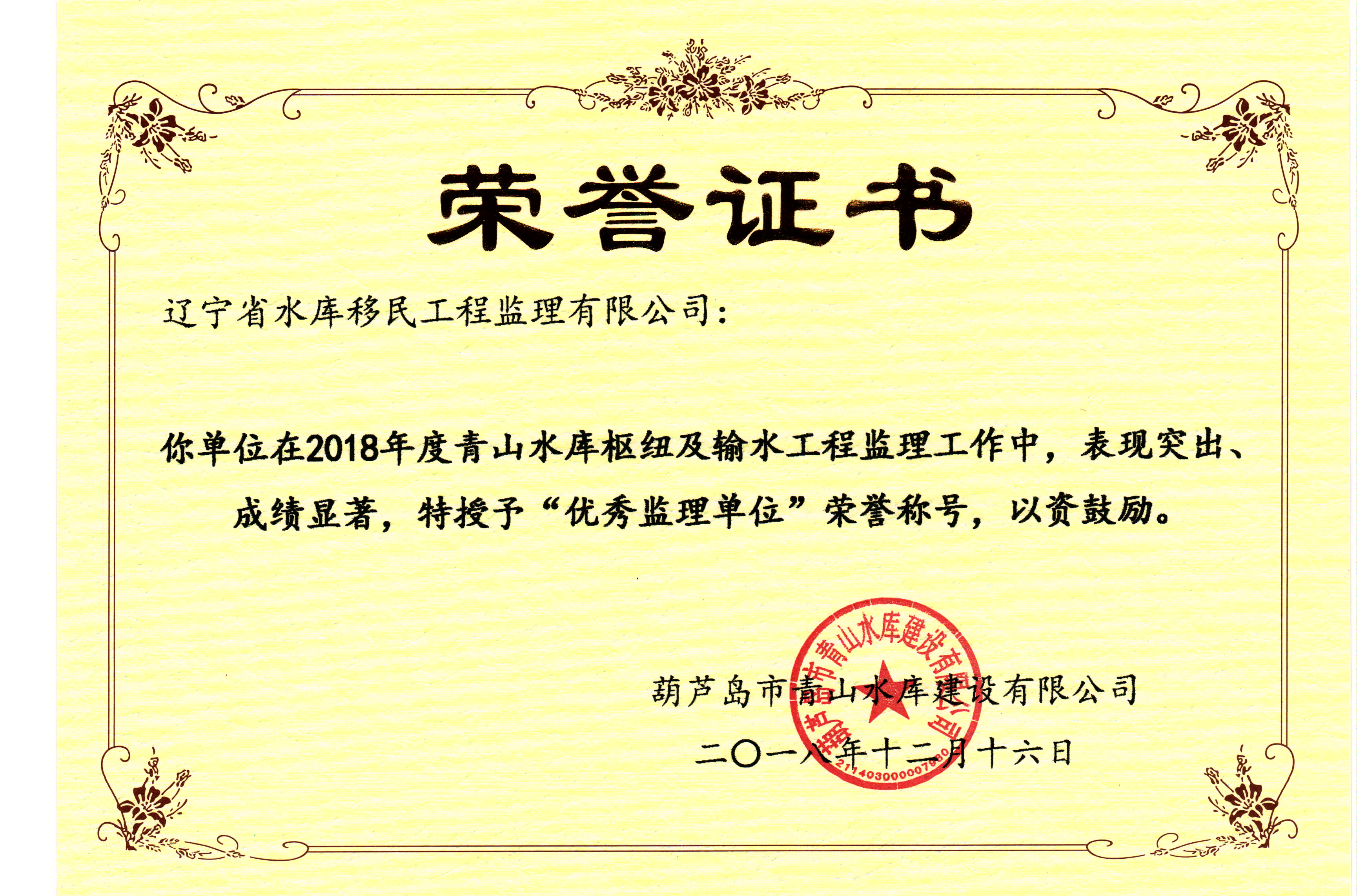 青山水庫(kù)優(yōu)秀監(jiān)理單位